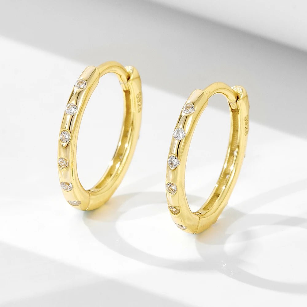 Peishang Wholesale Jewelry 925 Sterling Silver 14K Gold Plated Mini Series Small Cz Zircon Sample Hoop Huggies Earrings