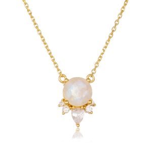 PEISHANG Fashion 7mm Natural Moonstone Jewelry Wholesale 925 Sterling Silver 14K Gold Plate Jewellery Gemstone Necklace for Girl