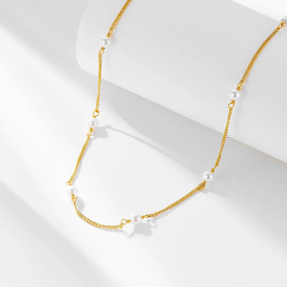 Peishang Wholesale 925 Sterling Silver Gold Plated Jewelry Choker Nekclce Dainty Handmade Pearl Necklace for Girls