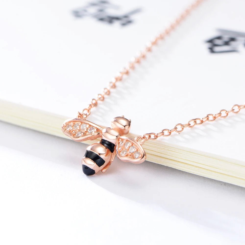 Wholesale 925 Sterling Silver Gold Small Dainty Minimalist Black Enamel Bee Necklace