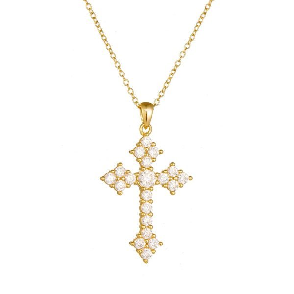 Original Luxury Hip Hop Unisex Cubic Zirconia Diamond Cross Necklace 925 Sterling Silver Jewelry 14k Gold Plated Clavicle Chain