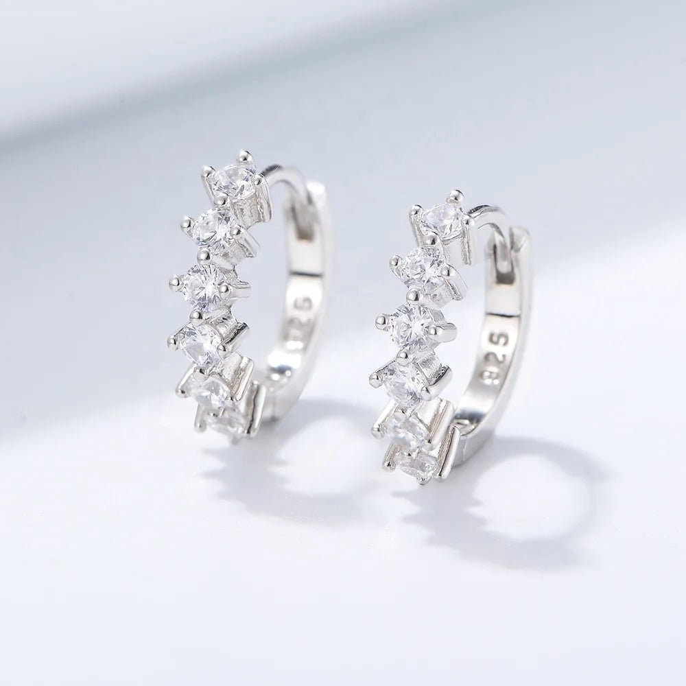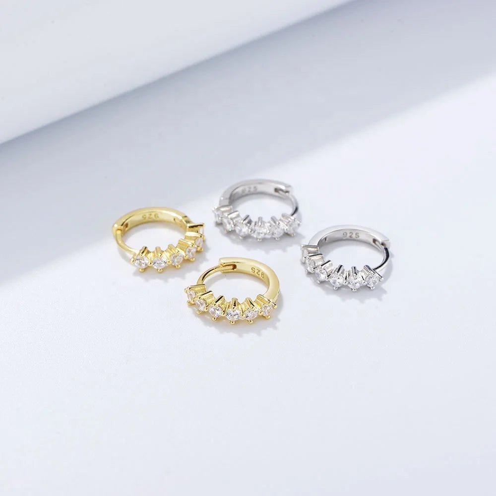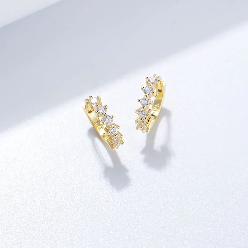 Luxury 925 Sterling Silver Jewelry Gold Plated Arete Trendy Party Wedding Round Cubic Zirconia Huggie Earrings Women