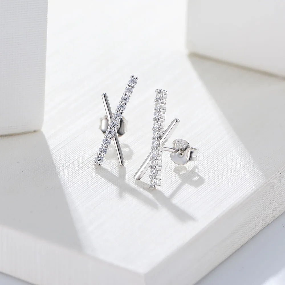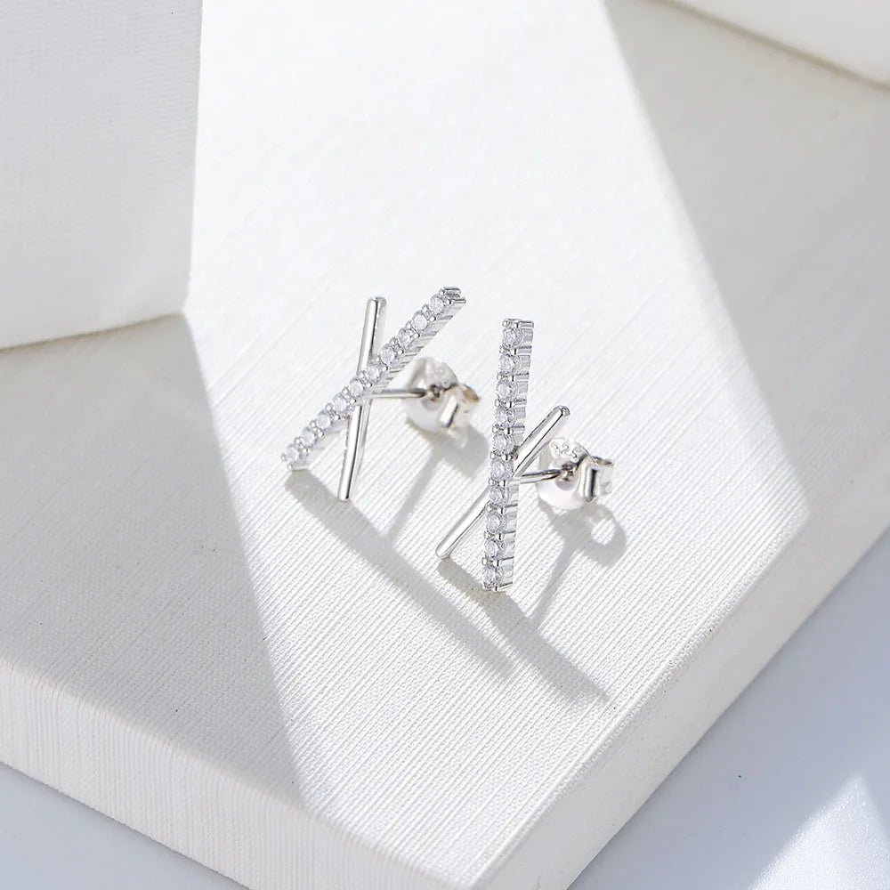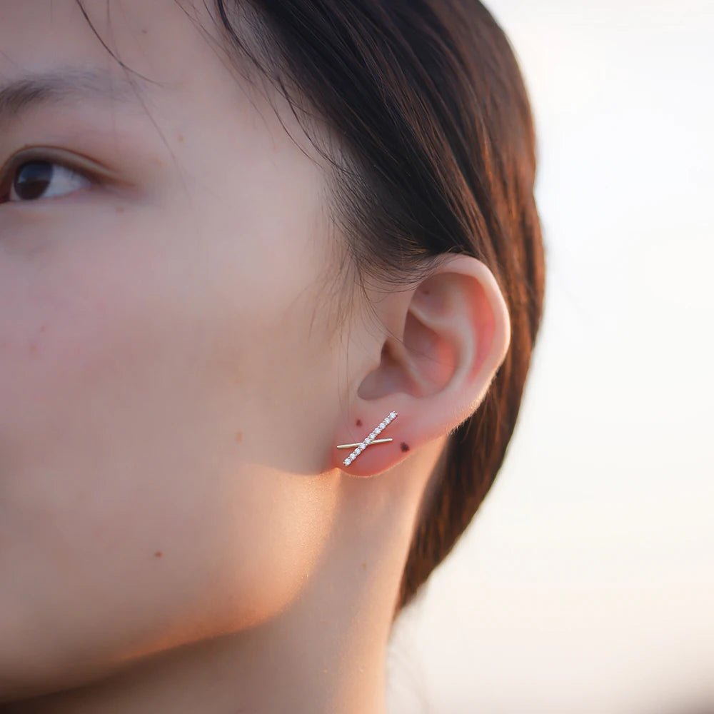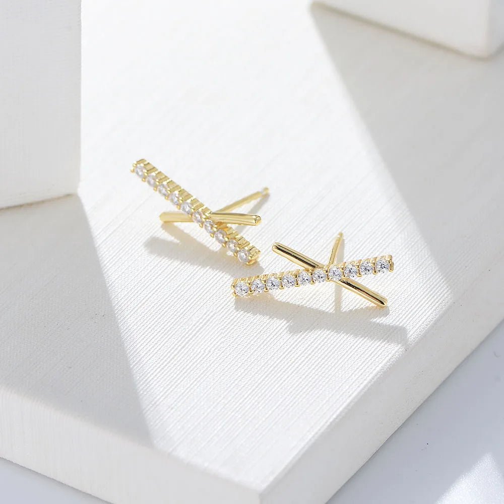 Minimalist X bar Stick Jewelry Psj S 925 Sterling Silver 14k Gold Plated Bling CZ Cubic Zirconia Stud Earrings