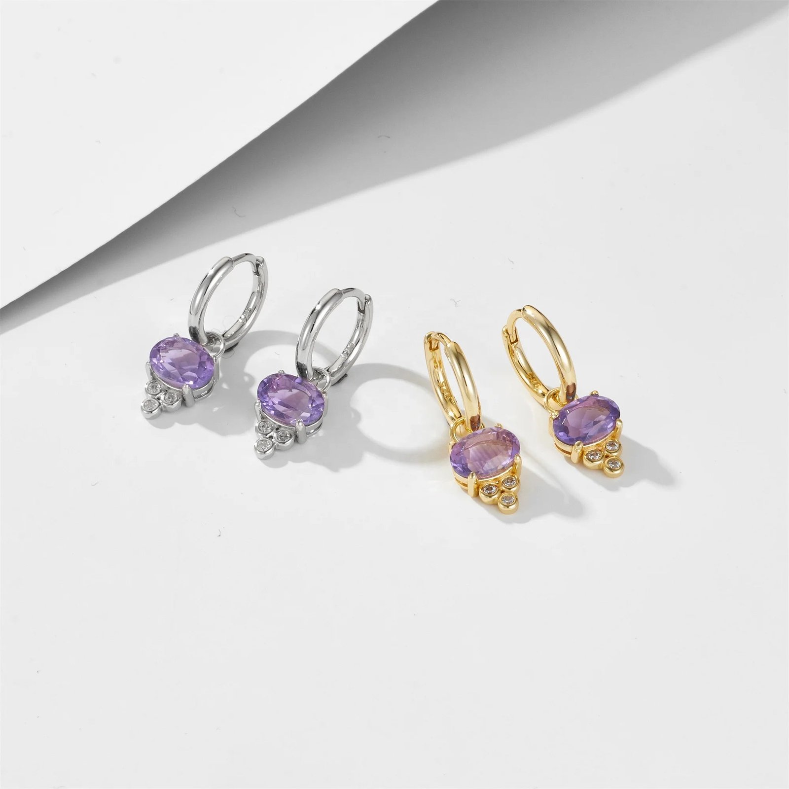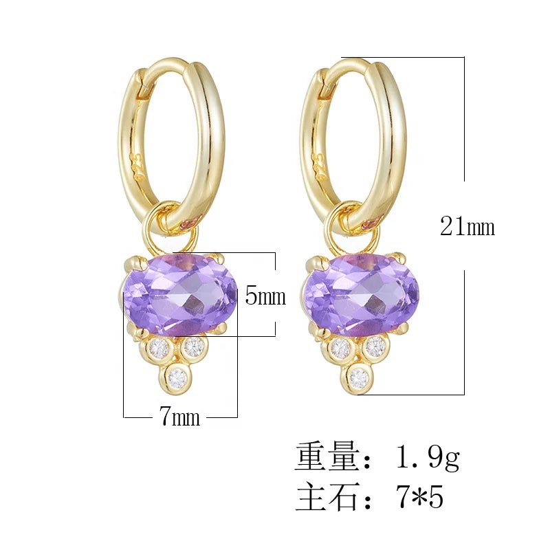 New Creative S925 Sterling Silver Amethyst Zircon Geometric Earrings Wholesale Jewelry Huggie Earring for Women