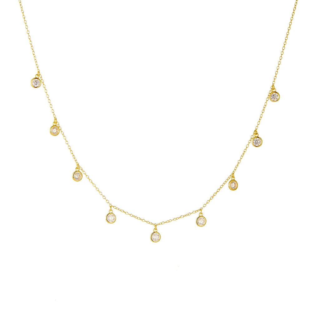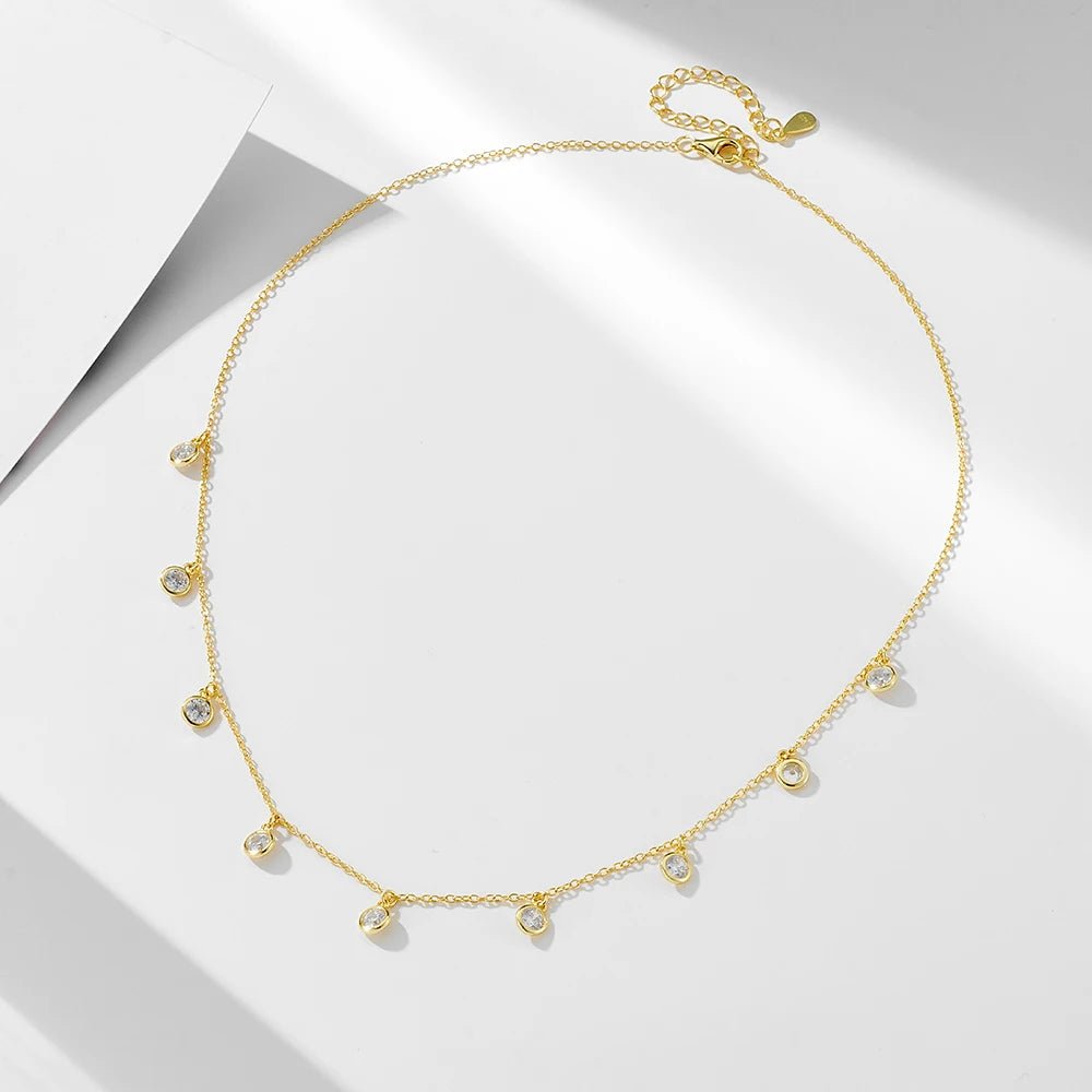Peishang Wholesale Jewelry 925 Sterling Silver Gold Plated Sparkle Round Cz Zircon Charm Chokers Necklace