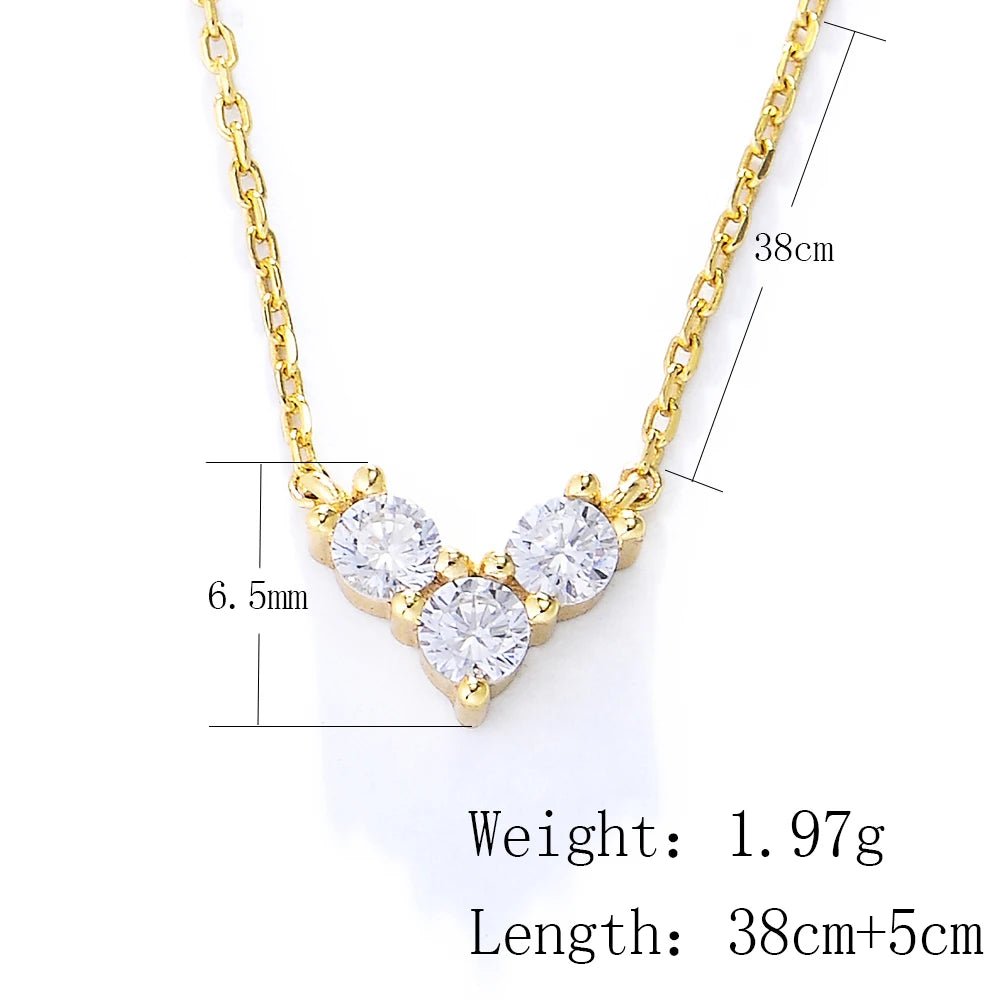 Wholesale Ins Classic Geometric Three Stone Chain Necklace Cubic Zirconia Letter V S925 Silver Jewelry