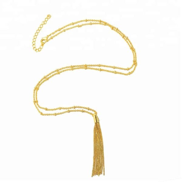 925 silver rose gold long  chain tassel necklace wholesale
