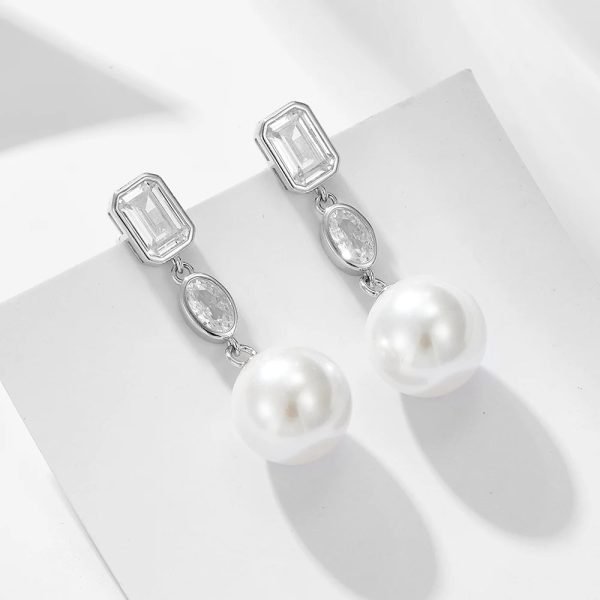 KE5380 Vintage Style Pearl Dangle Earrings Delicate Sterling Silver Jewelry for Women