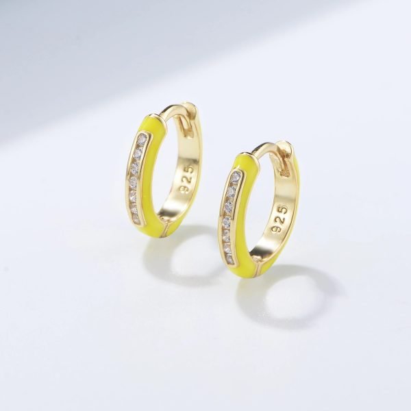 Fashion Western Jewelry Enamel Hoop Psj 925 Sterling Silver 14k Gold Plated CZ Cubic Zirconia Huggies Earrings