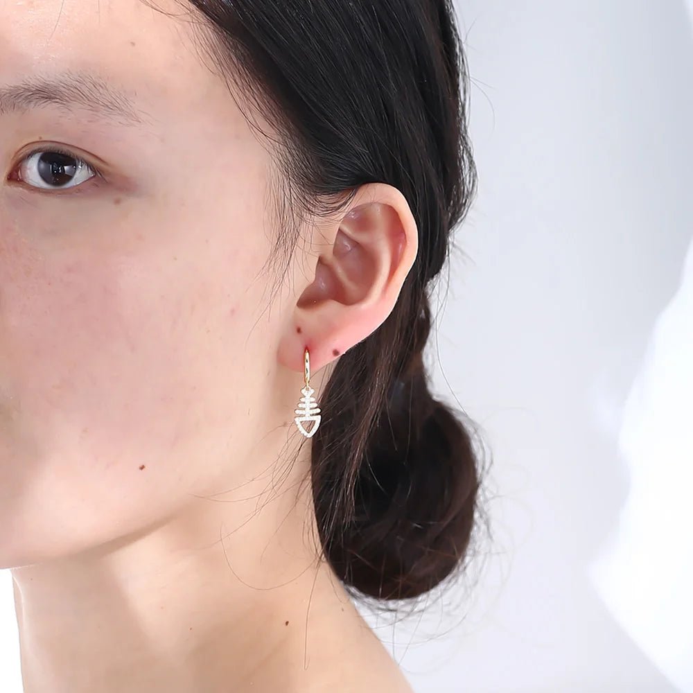 Wholesale 925 Sterling Silver Gold Plated Custom Gold Vermeil Cute Animal Fish Jewelry Hoop Fishbone Huggie Earrings for Party