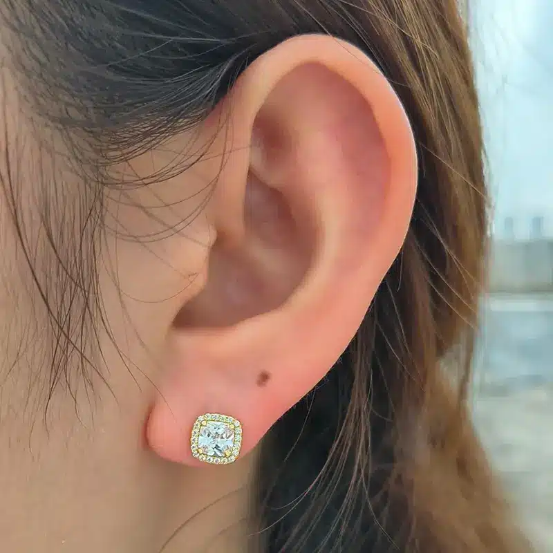 Elevate your jewelry collection with our stunning 925 Sterling Silver 14K Gold Plated Cz Zircon Geometric Square Stud Earrings. These earrings blend modern design with classic elegance, making them a versatile addition to any outfit.