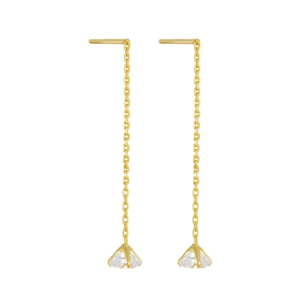 Illuminate your jewelry collection with our stunning 925 Sterling Silver 14K Gold Plated Cz Zircon Drop Chain Stud Earrings. These earrings showcase a perfect blend of elegance and modern design, making them an exquisite accessory for various occasions.