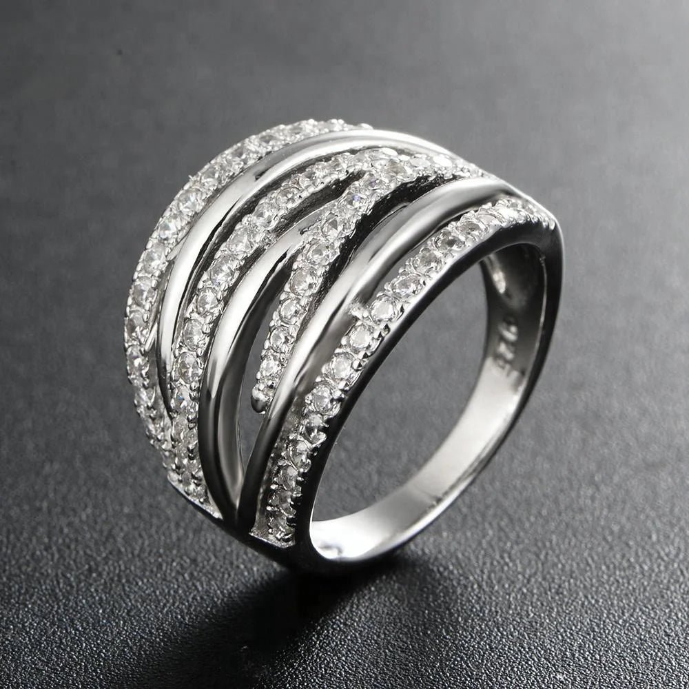 925 Sterling Silver Ring Triple Interlocked Band Rolling Zircon High Polish Ring