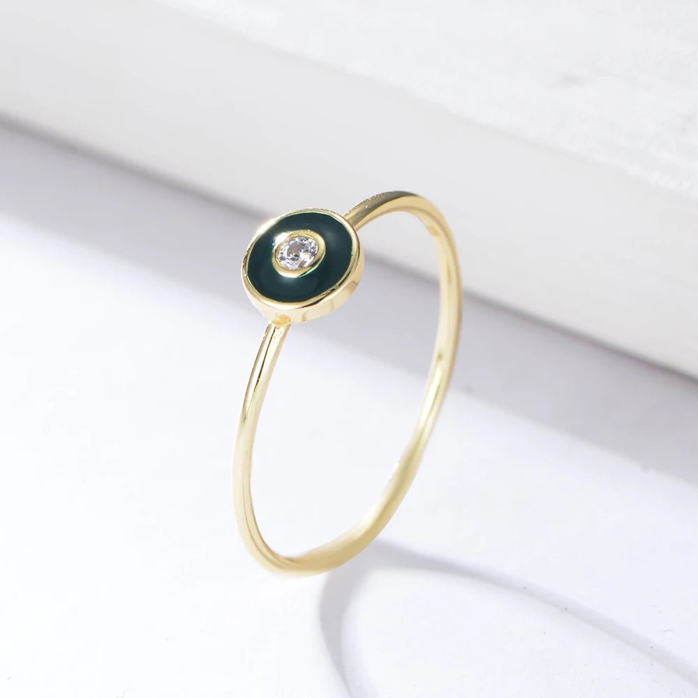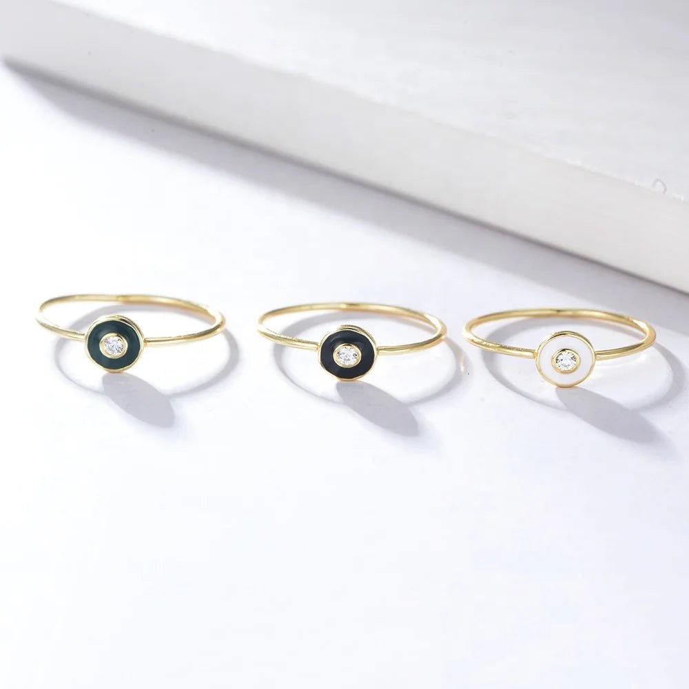 Peishang Fashion Multi-color Simple Round Enamel Rings Cubic Zirconia 925 Sterling Silver Gold Jewelry Custom Bijoux Anillos