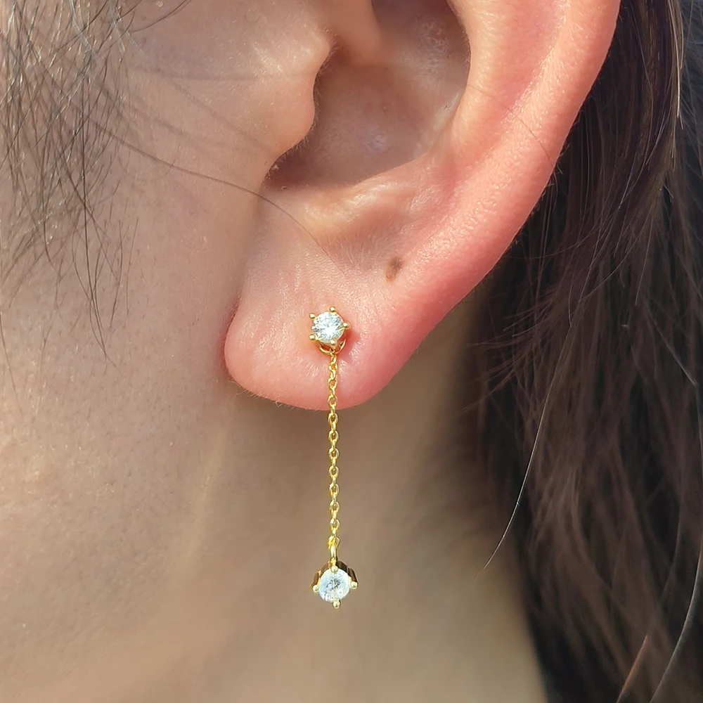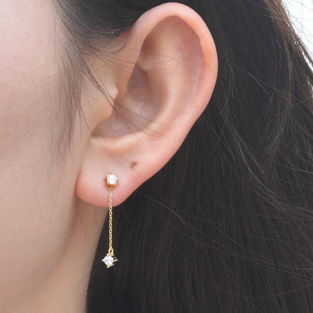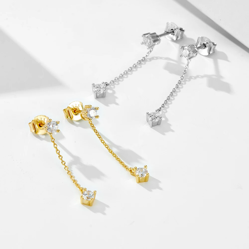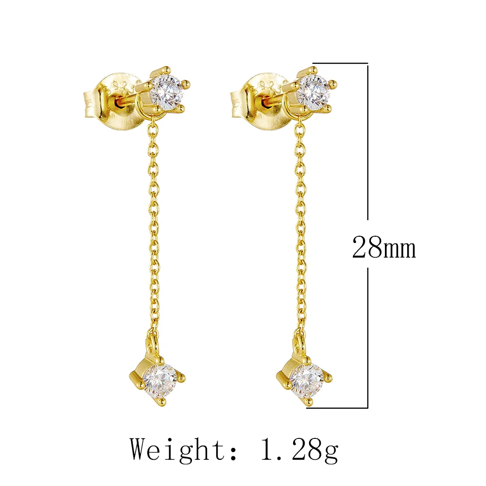 Peishang Jewelry 925 Sterling Silver 14K Cz Cubic Zirconia Zircon Pendant Tassel Long Chain Gold Plated Stud Earrings