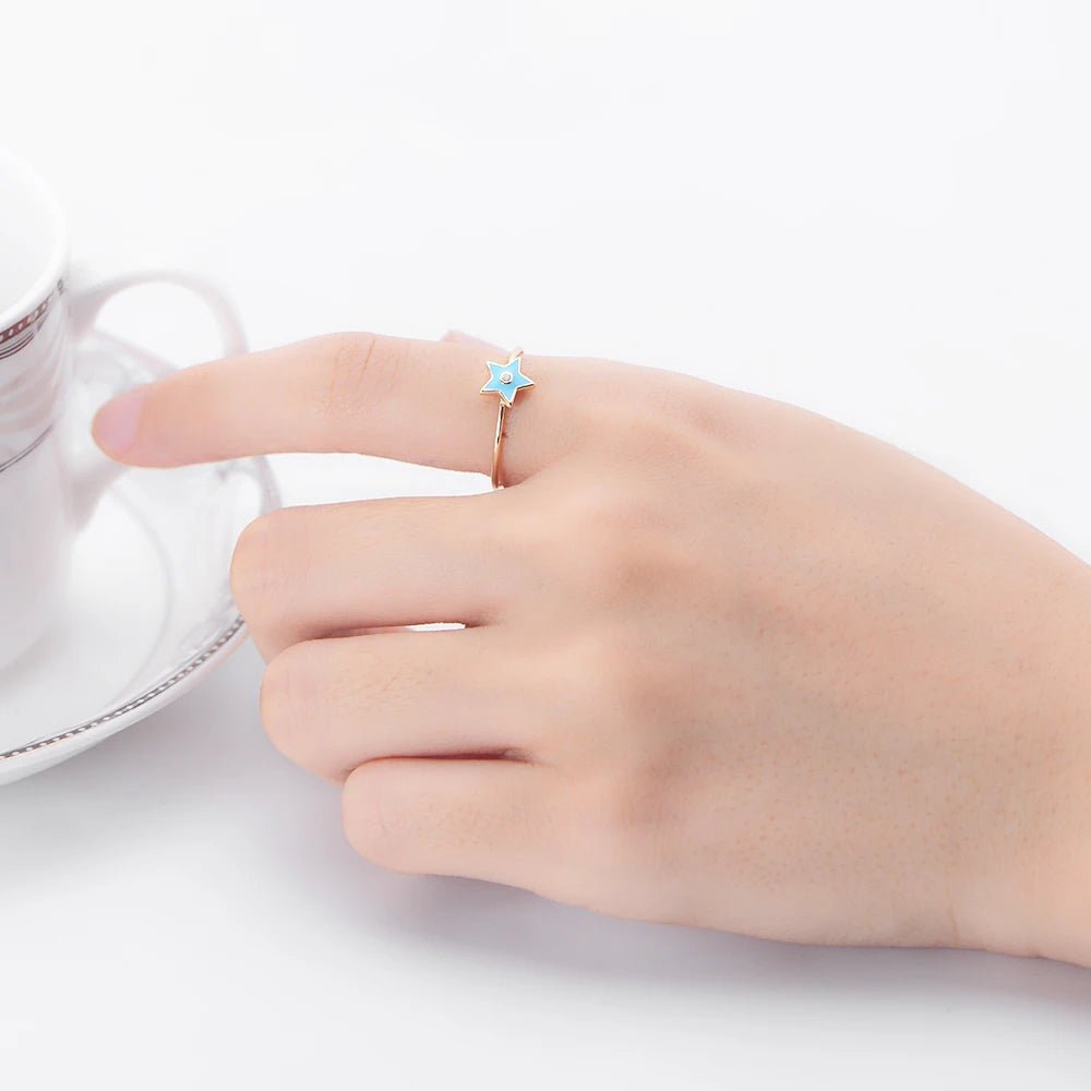 Peishang Multi-color Simple Star Enamel Rings Zircon 925 Sterling Silver Jewelry Wholesale OEM ODM Bijoux Anillos