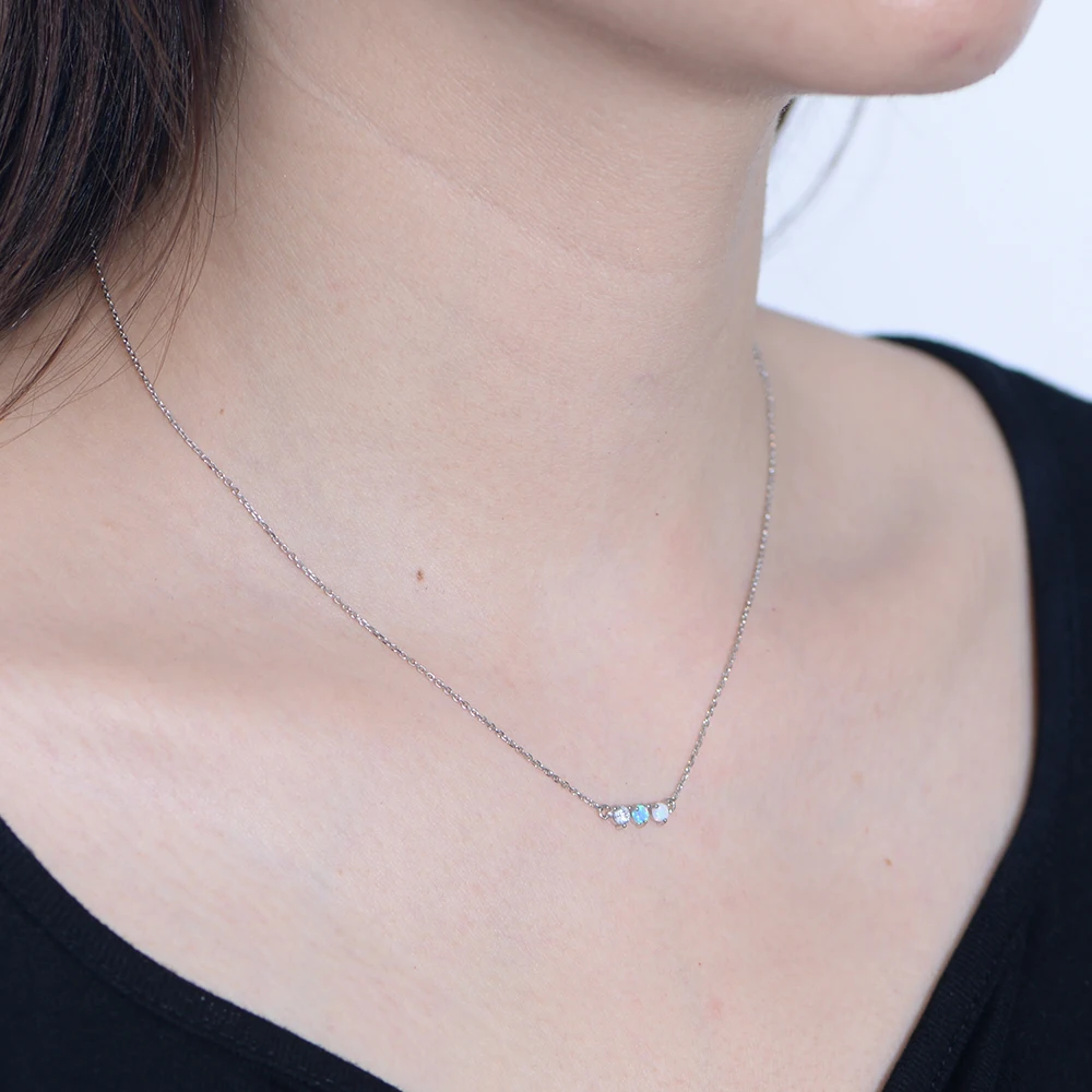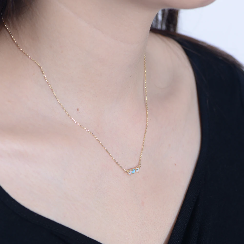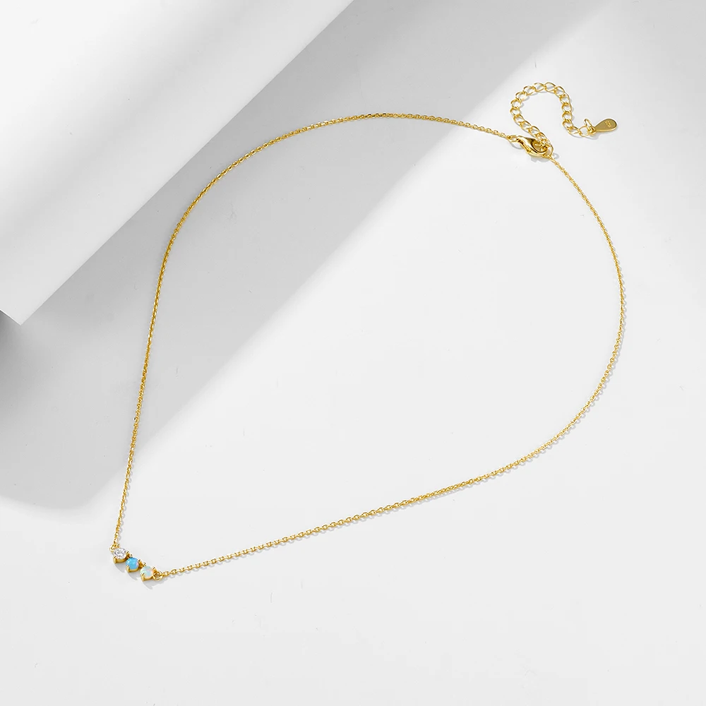 Peishang Wholesale High Quality 925 Sterling Silver 18k Gold Pave Opal Diamond Necklace Women Jewelry