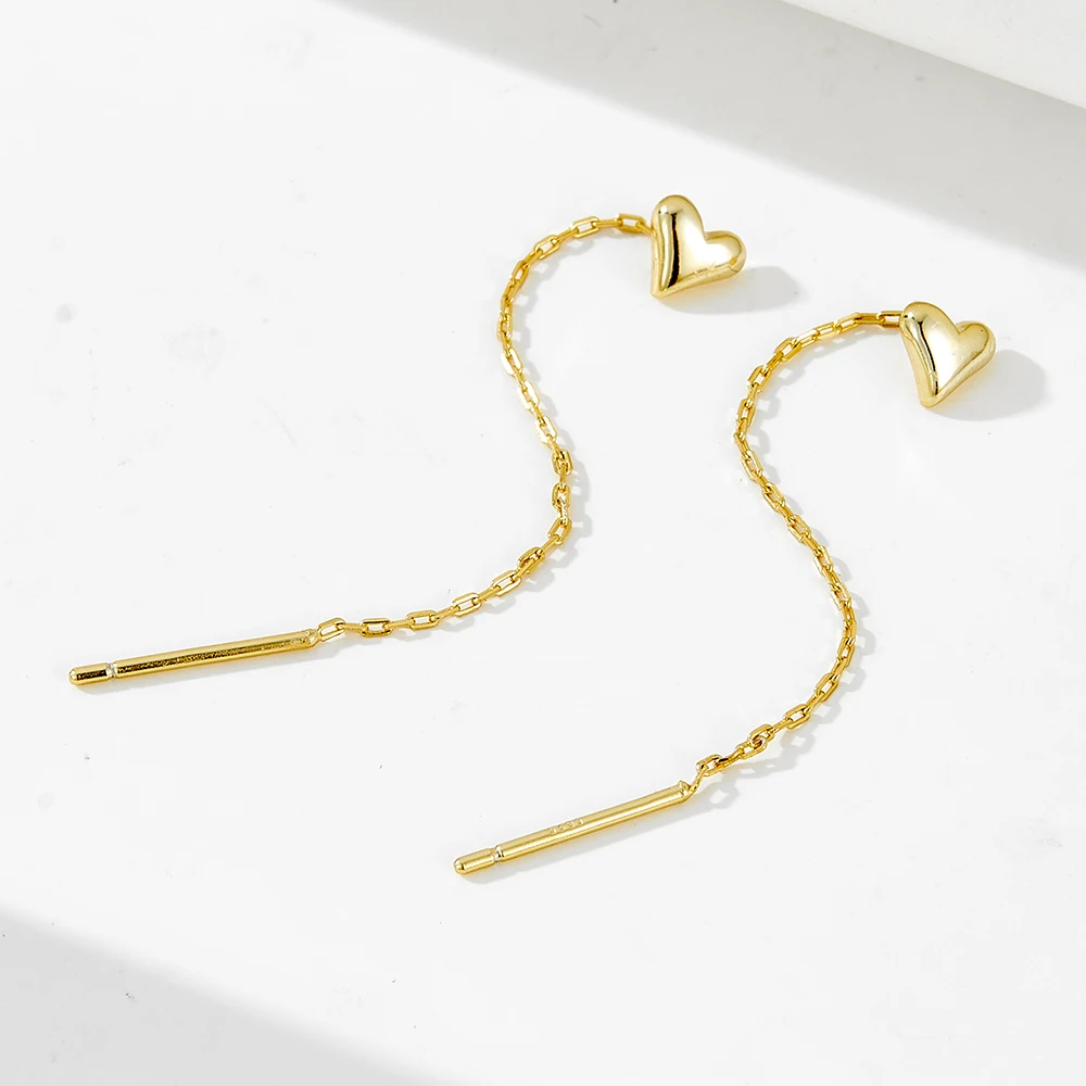Peishang 925 Sterling Silver 14K Gold Plated Minimalist Jewelry Love Heart Ear Wire Earrings