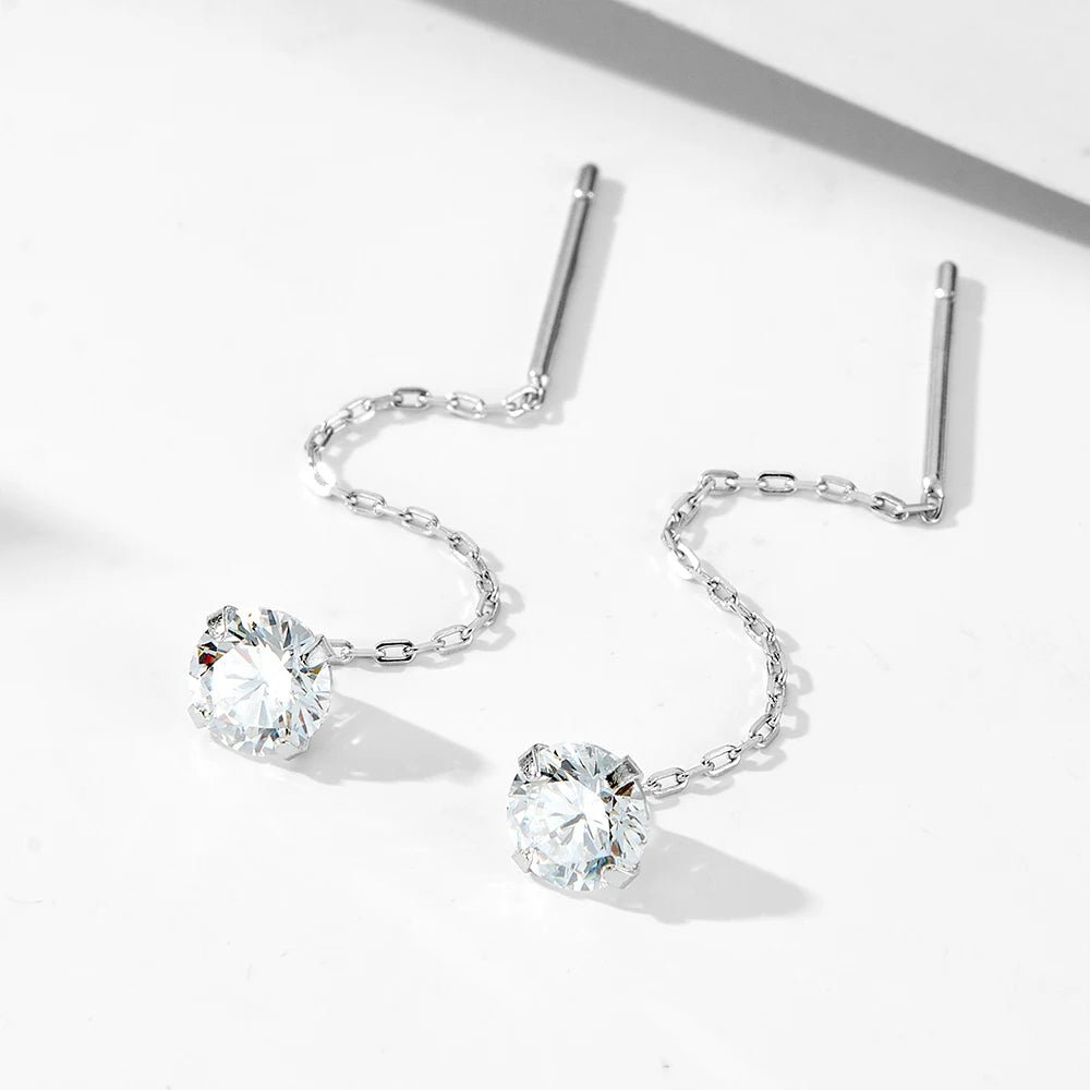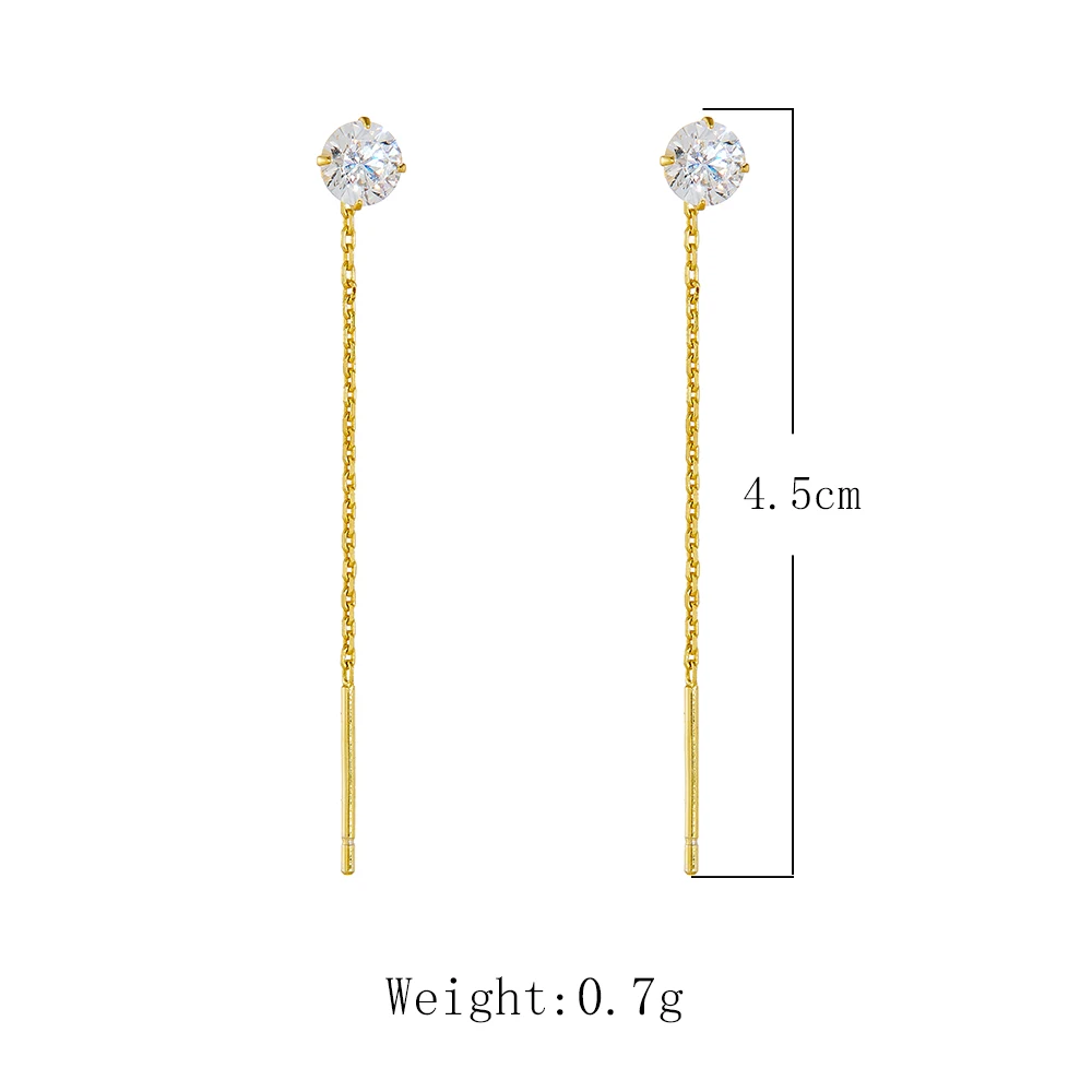 Peishang Jewelry 925 Sterling Silver 14K Gold Plated Cz Cubic Zirconia Zircon Tassel Drop Chain Stud Earrings