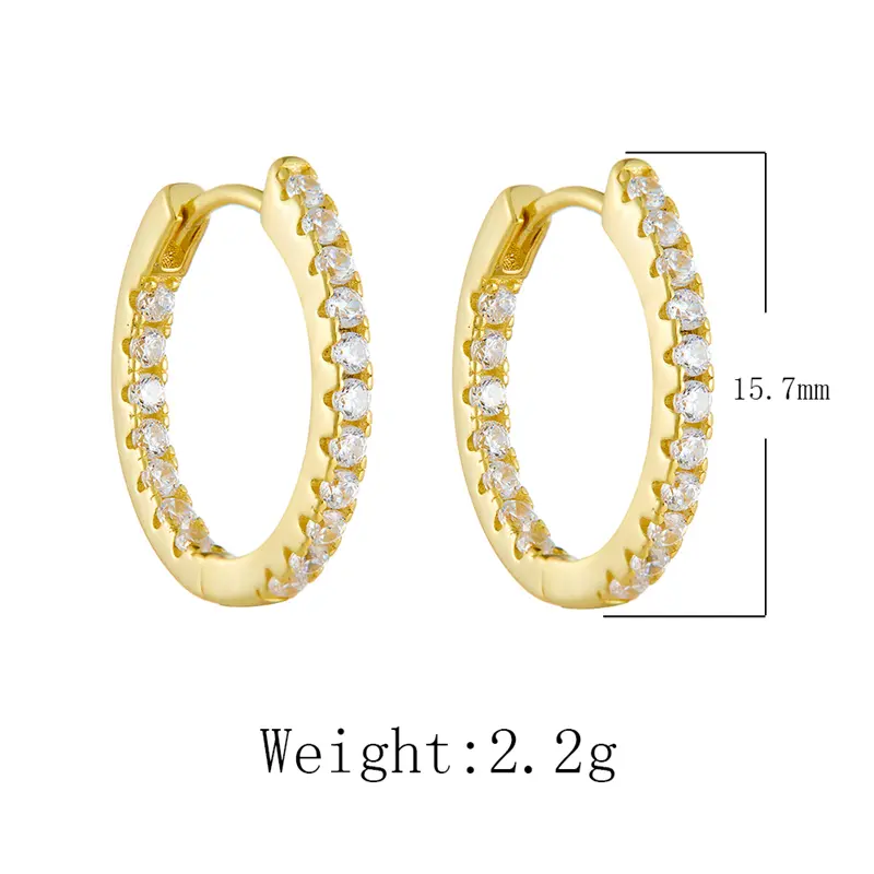 Peishang Wholesale Jewelry 925 Sterling Silver 14K Gold Plated CZ Zircon Classy Minimalist Huggie Earrings