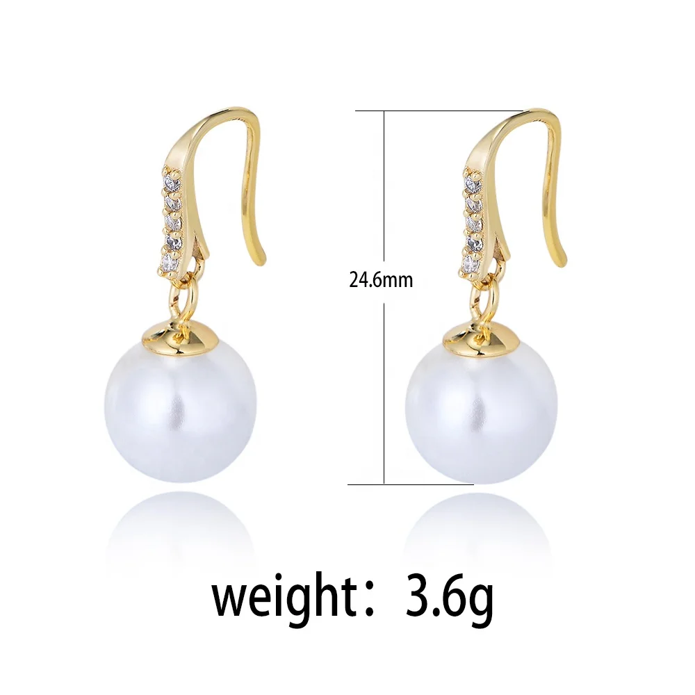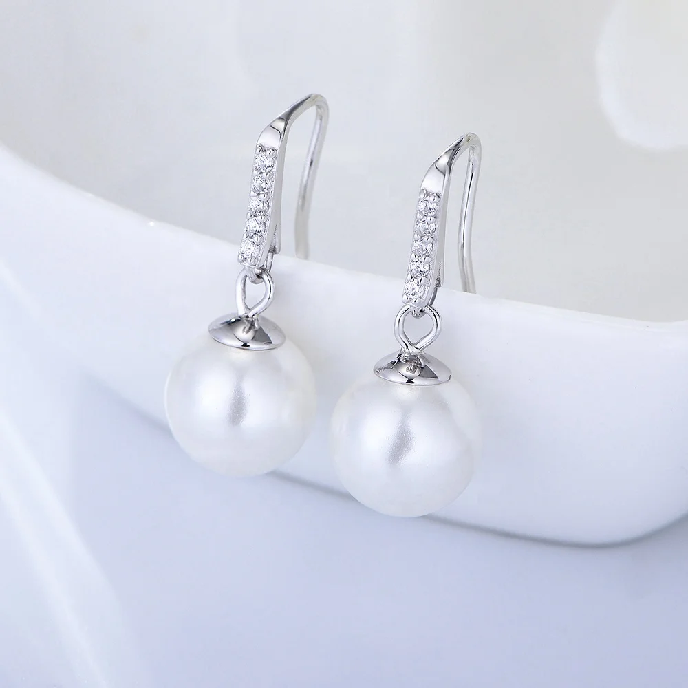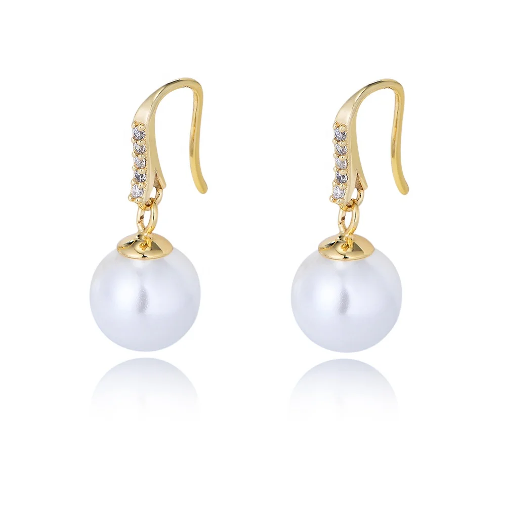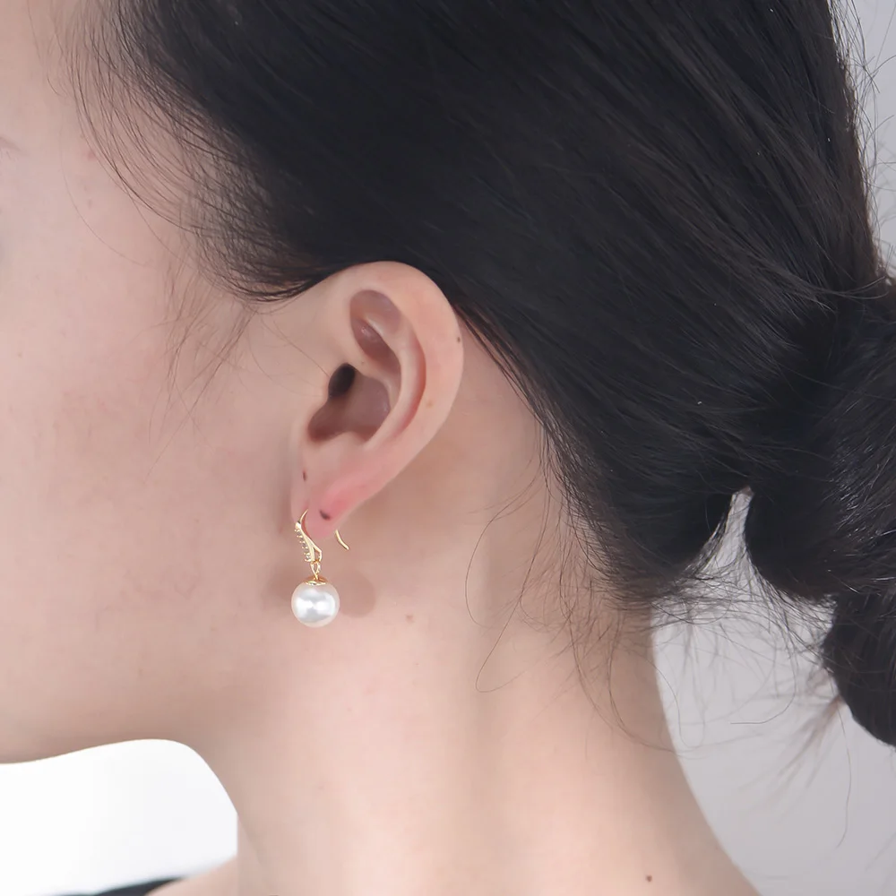 Classic Round Big Shell Pearl Hook Psj 925 Sterling Silver 14k Gold Plated Cubic Zircon Shell Pearl Drop Ball Earrings for Women