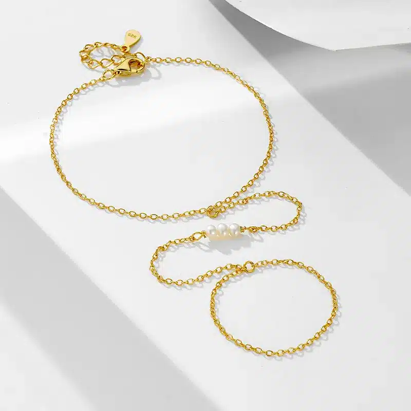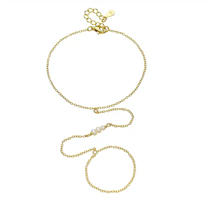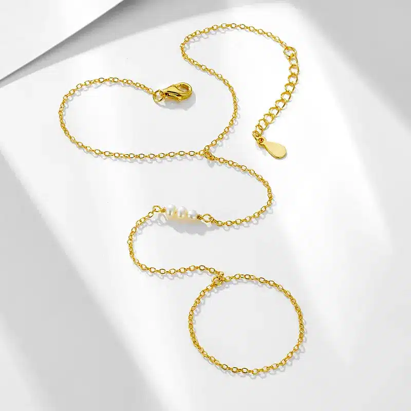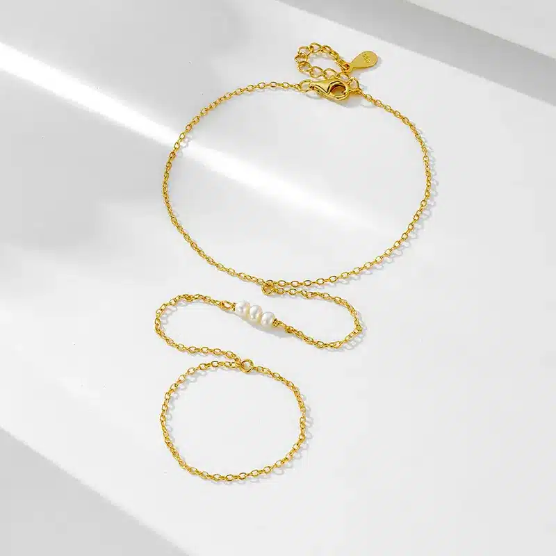 Enhance your accessory collection with the exquisite 925 Sterling Silver 14K Gold Plated Chain Bracelet Bar Pearl Ring, where elegance meets modern design.