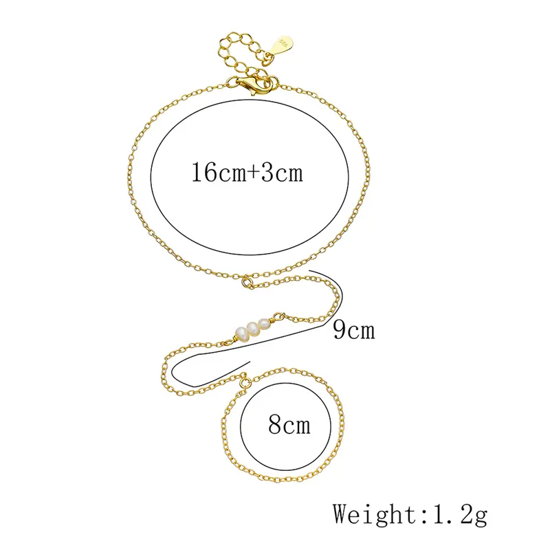 Peishang Wholesale Jewelry 925 Sterling Silver 14K Gold Plated Chain Bar Pearl Ring Bracelet
