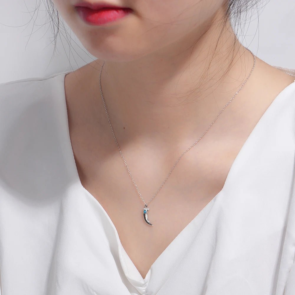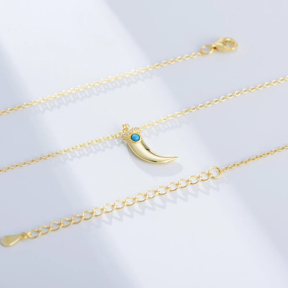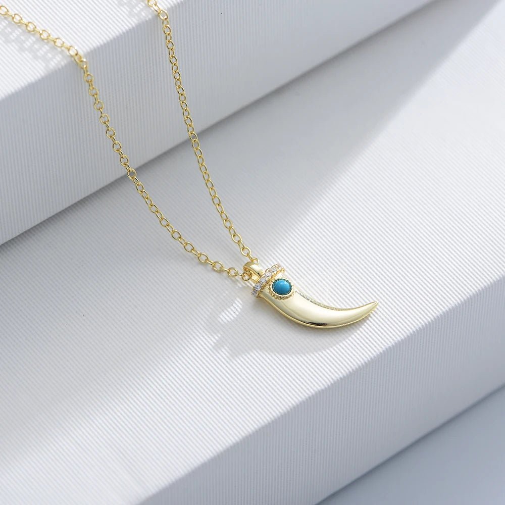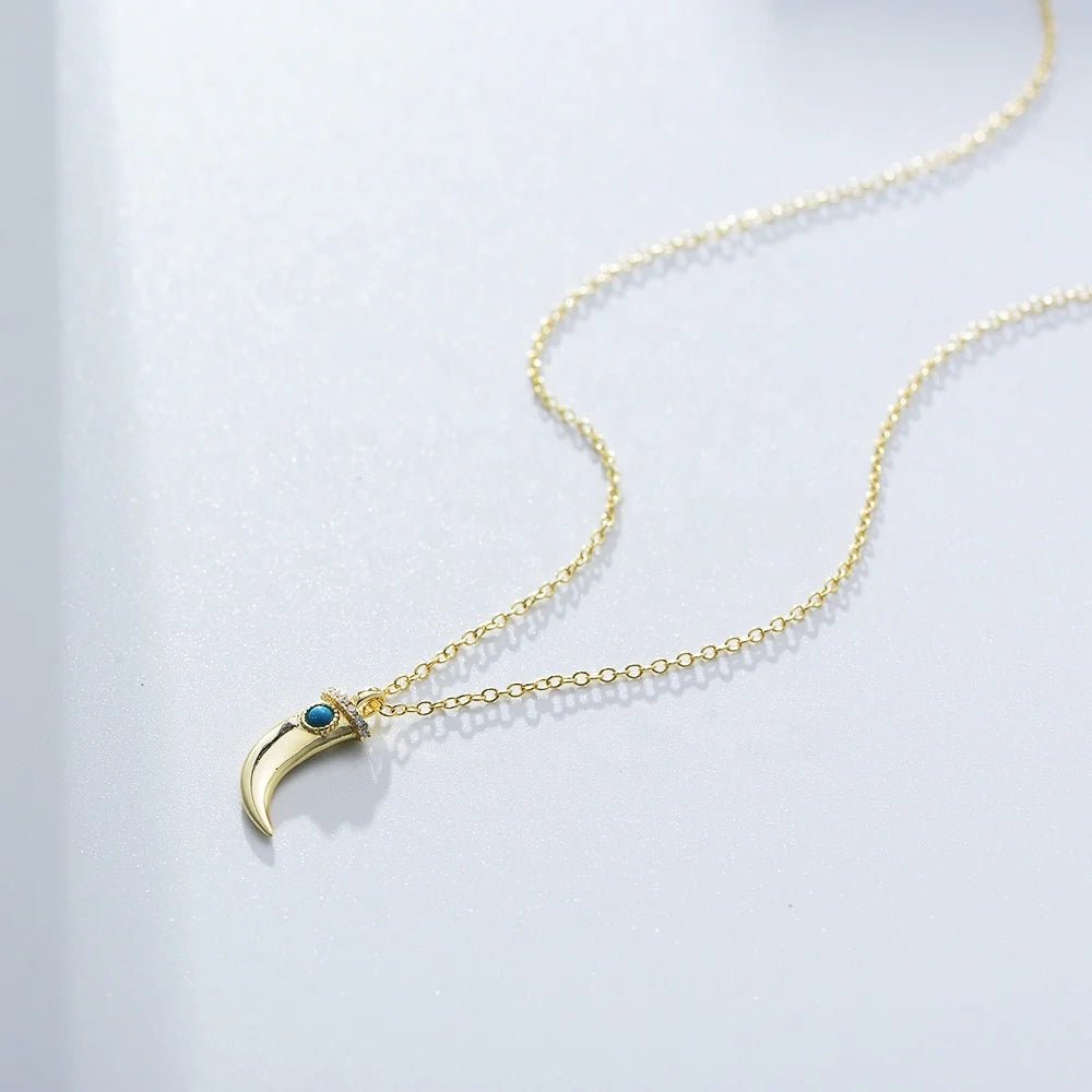 New 925 Sterling Silver Gold Plated Crescent Moon Dagger Hand Shaped Cz Zircon Turquoise Pendant Necklace