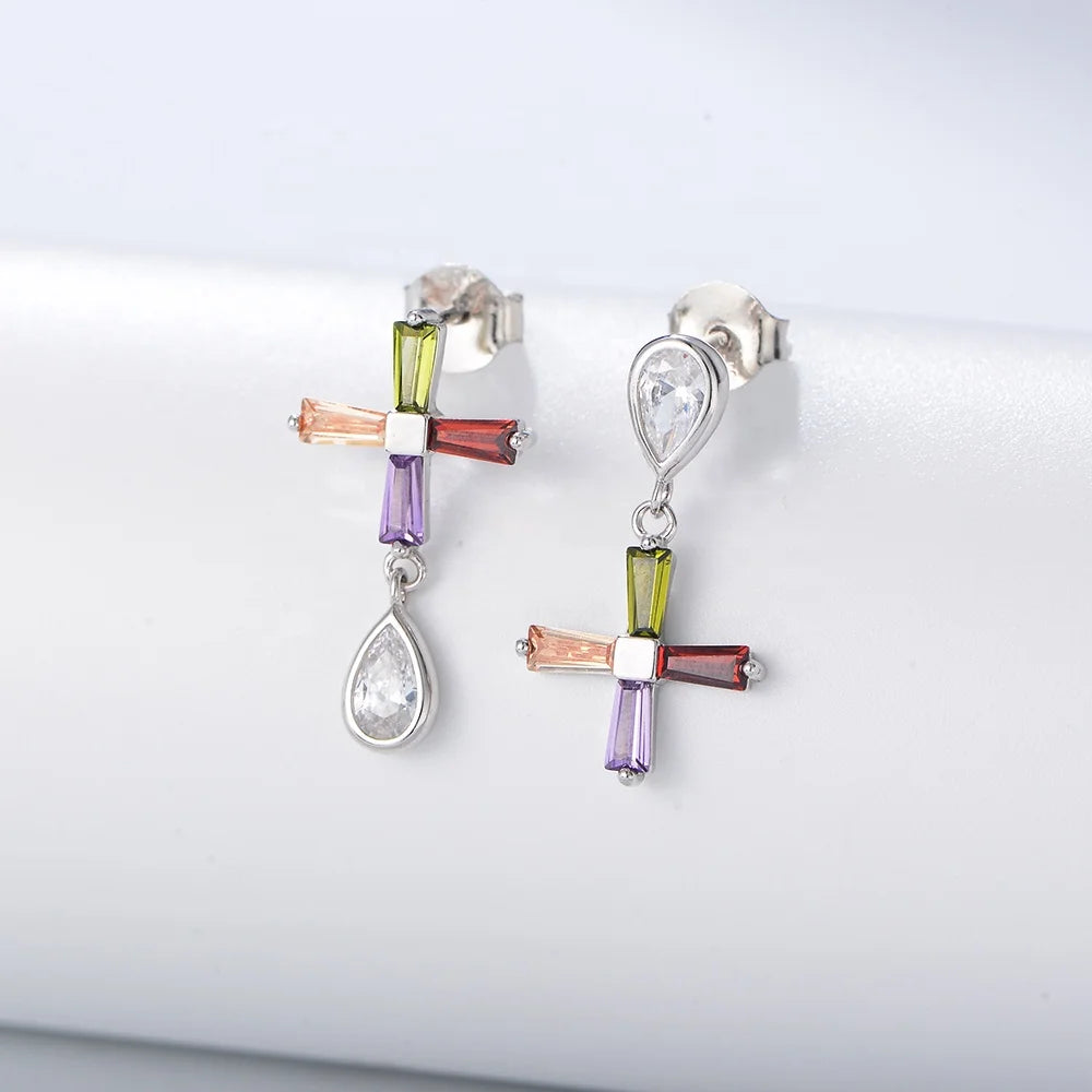 SKU: 10216216592659-14k-gold-plated-dangle-earrings-trendy-925-pear-cz-colorful-cross-silver-stud-earrings Category: