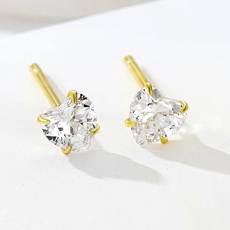 Peishang Wholesale Jewelry 925 Sterling Silver 14K Gold Plated White Cz Zircon Heart Stud Earrings