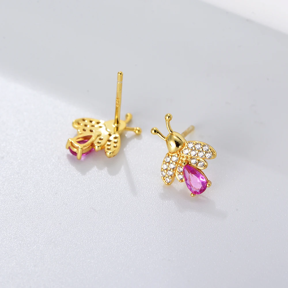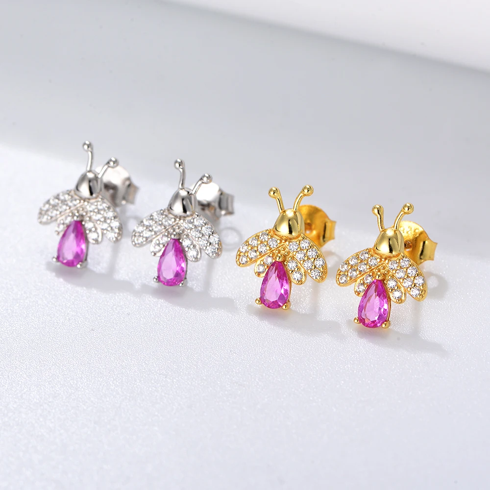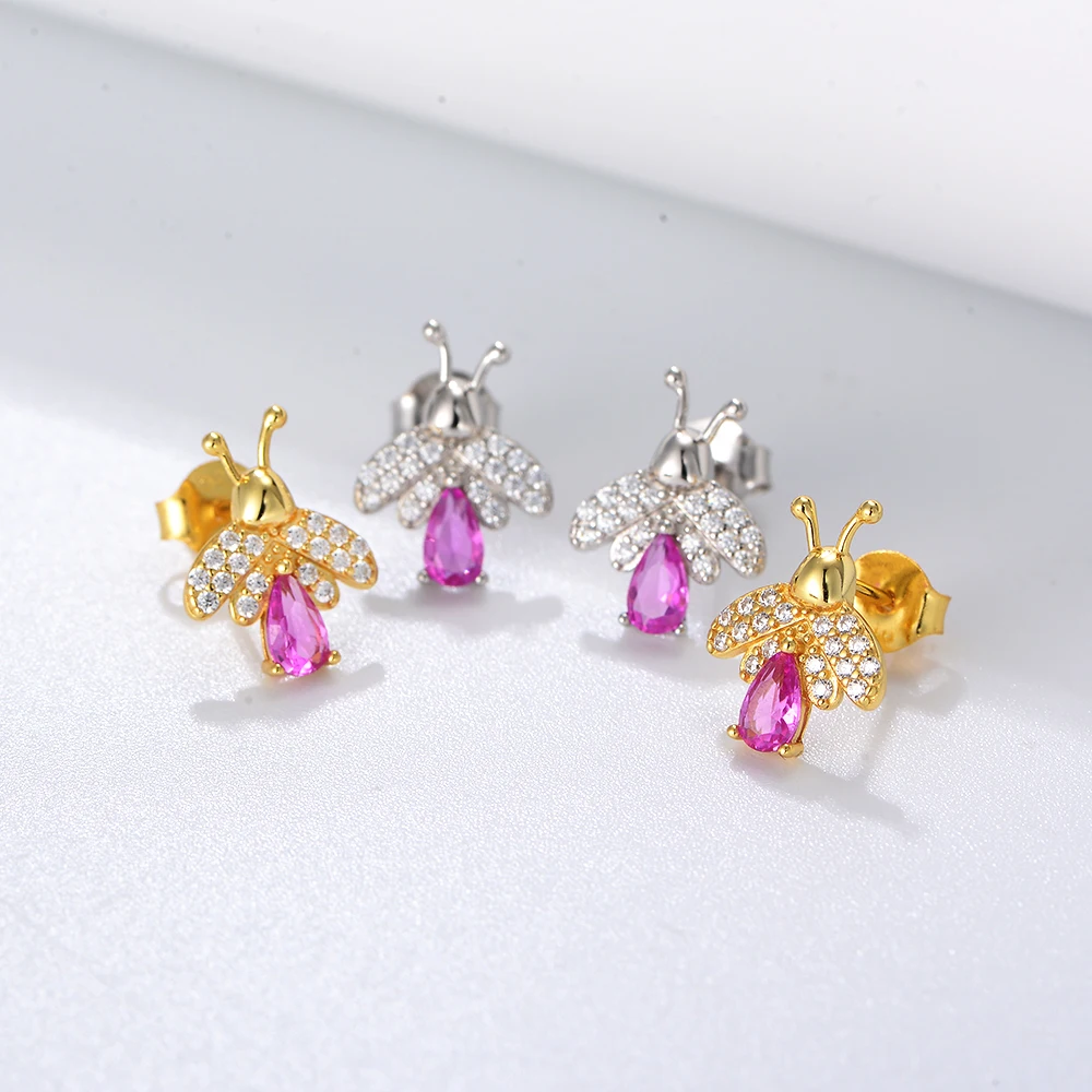 SKU: 10216195064083-unique-design-butterfly-wing-back-lovely-earrings-925-silver-bee-pink-pear-cz-stud Category: