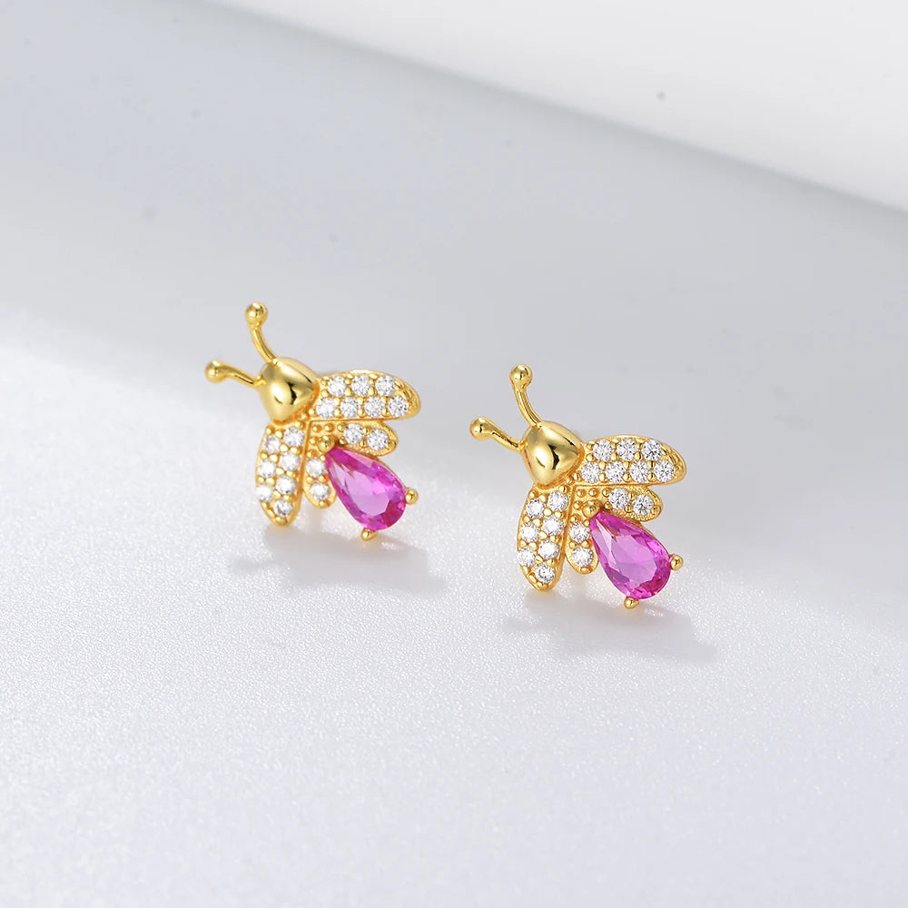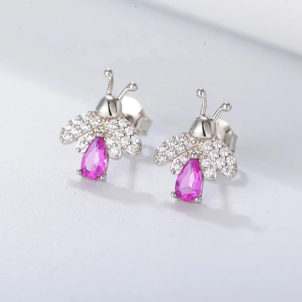 Unique Design Butterfly Wing Back Lovely Earrings 925 Silver Bee Pink Pear Cz Stud