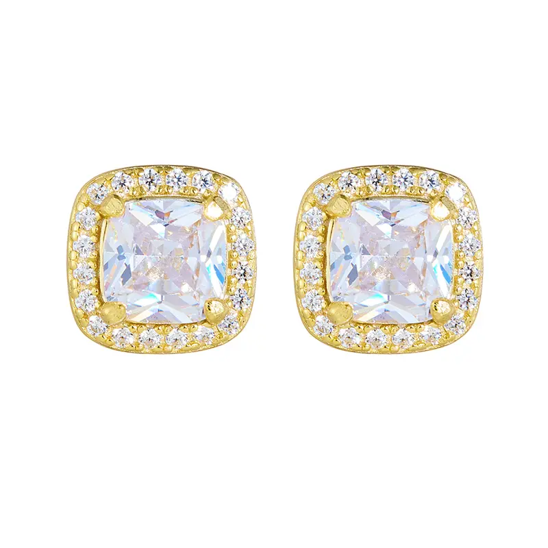 Peishang Wholesale Jewelry 925 Sterling Silver 14K Gold Plated Cz Zircon Geometric Square Stud Earrings